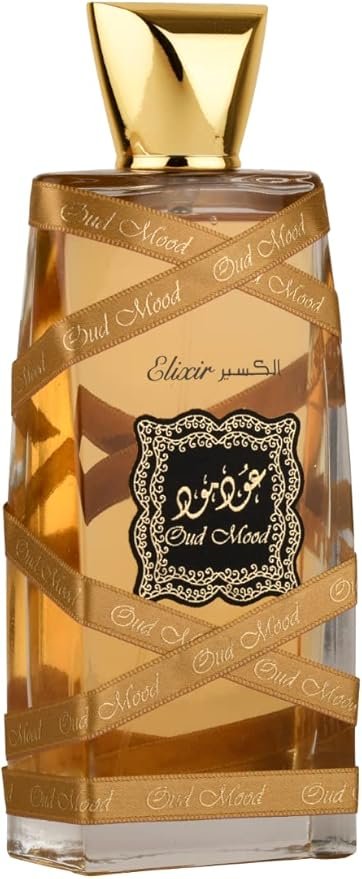 Lattafa Oud Mood Elixir EDP 100 ml es la versión más intensa y sensual de la línea Oud Mood. Combina la dulzura de la miel y la vainilla con la profundidad del oud y el brillo del ámbar dorado.